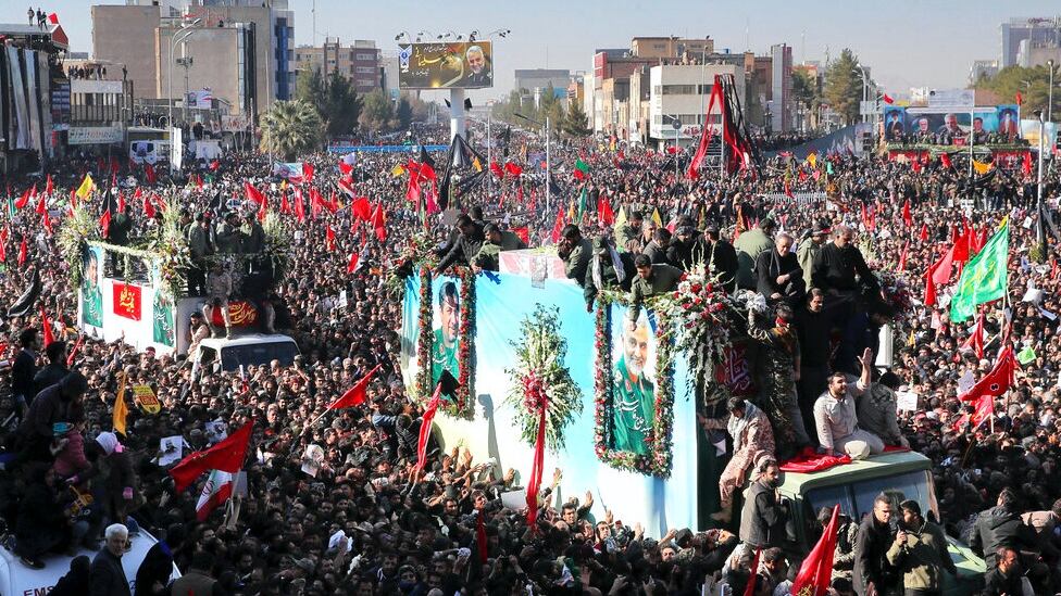 La televisión estatal de Irán señaló que el ataque fue en venganza por la muerte del general de la Guardia Revolucionaria Qassem Soleimani, cuyo funeral el martes dio pie a llamados a vengar su muerte, la cual aumentó drásticamente las tensiones en Medio Oriente.