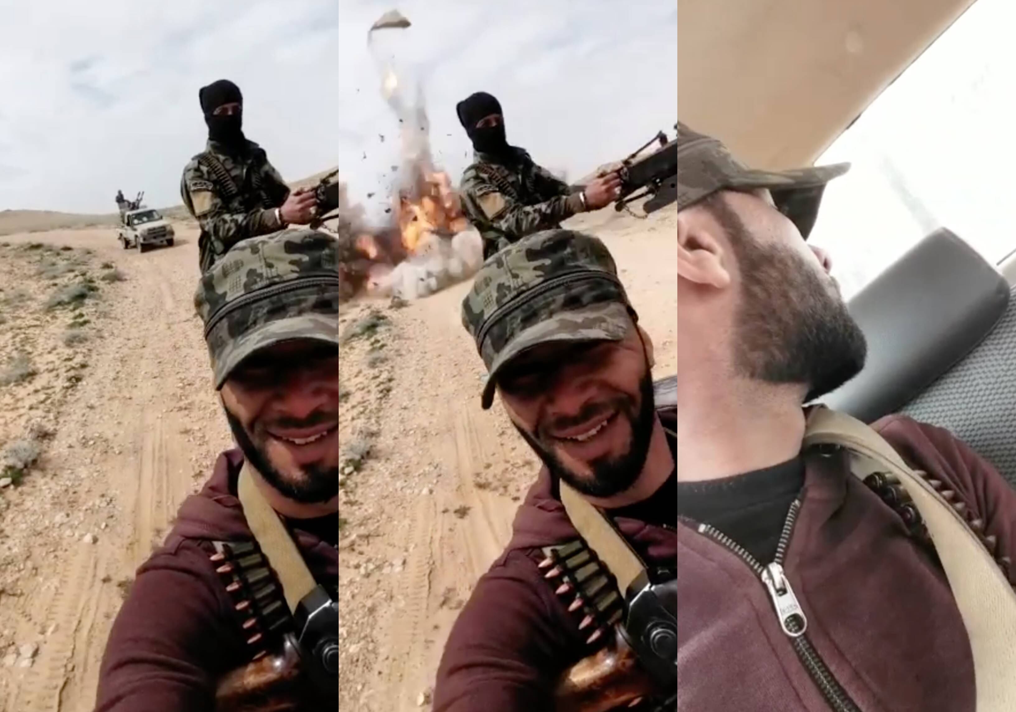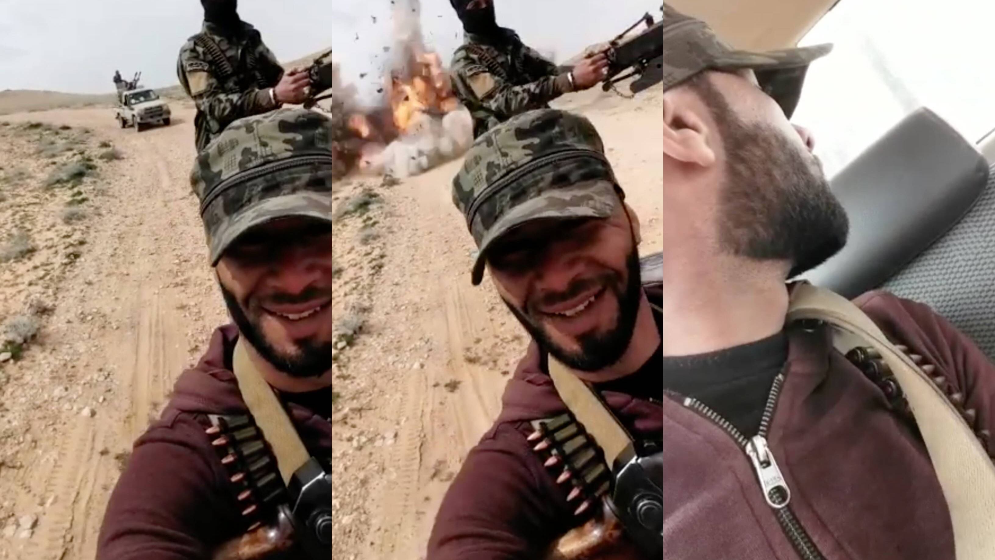 Las imágenes muestran como los soldados viajan en 2 autos diferentes y se encuentran grabando el recorrido, inmediatamente una gran explosión se escucha y el carro que viajaba al último, estalla con todos los tripulantes.