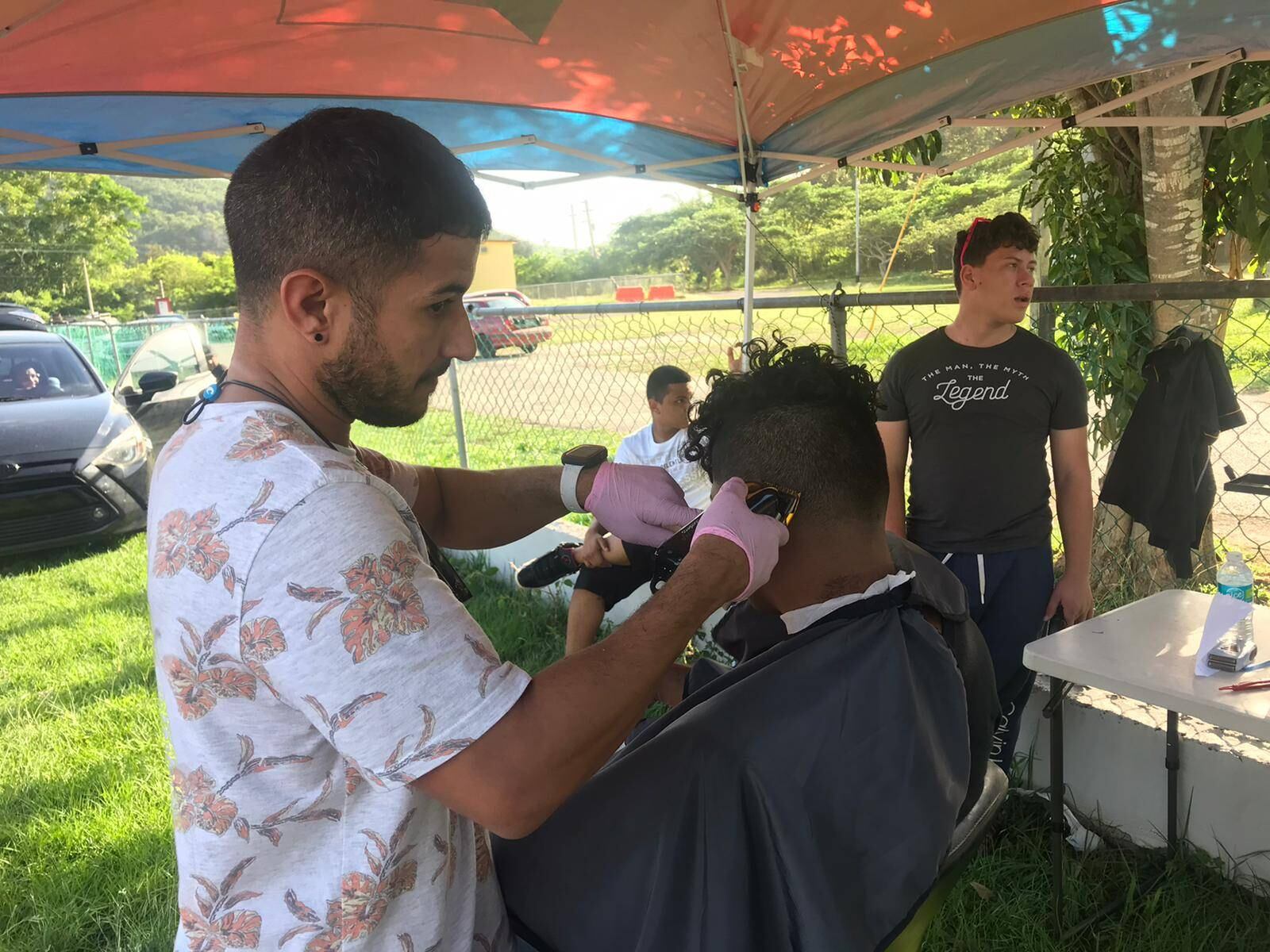 Desde que colocó la carpa, a eso del mediodía, el joven dio recortes libre de costo a sobre 13 jóvenes y adultos mayores que se encuentran refugiados en una de las carpas que el municipio habilitó en la pista atlética de Peñuelas.