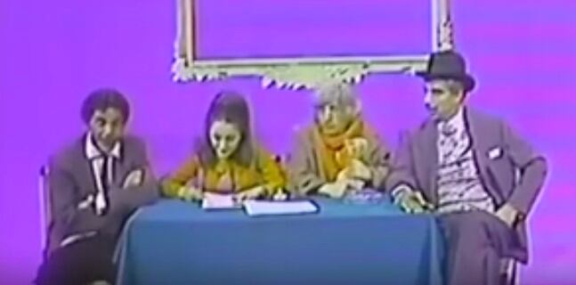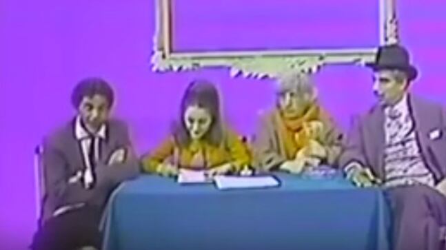 En el registro, de un espacio llamado “Los supergenios de la mesa cuadrada”, se puede ver a Roberto Gómez Bolaños representando al anciano mientras es “interrogado” por María Antonieta de las Nieves.