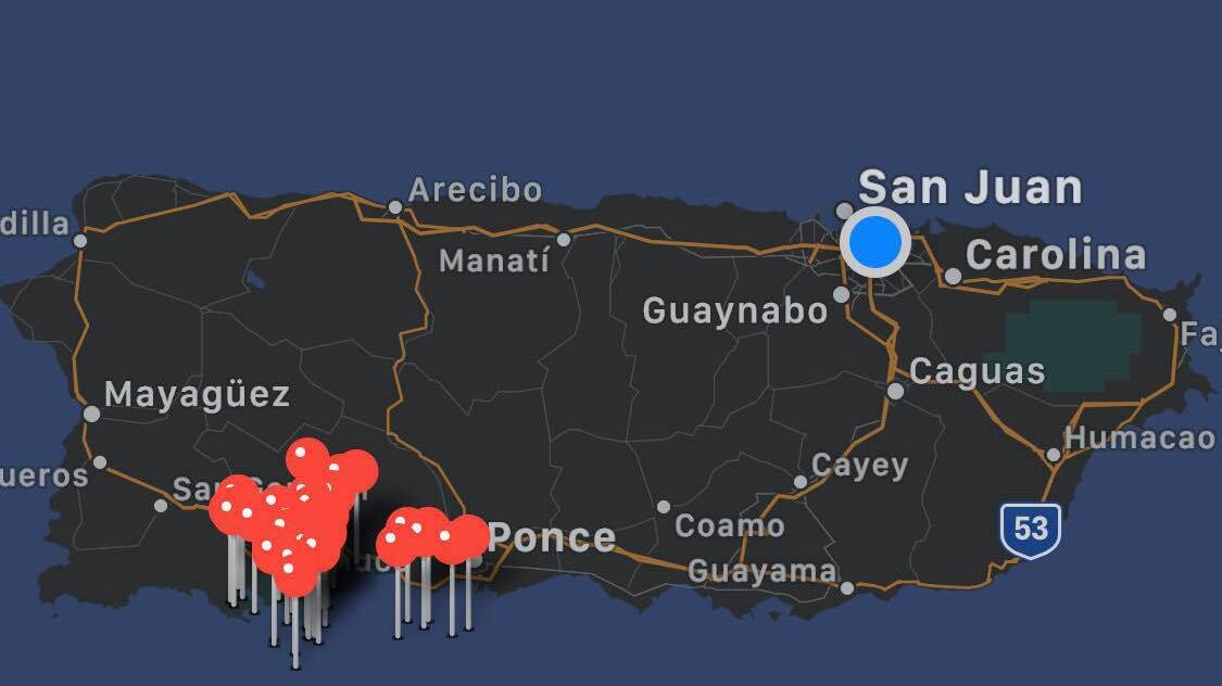 El primero se registró a las 4:05 de la mañana con ubicación a 16.64 kilómetros (km) al sur-sureste de Peñuelas y tuvo una intensidad de 4.5 grados. Este movimiento telúrico experimentó 6 km de profundidad.