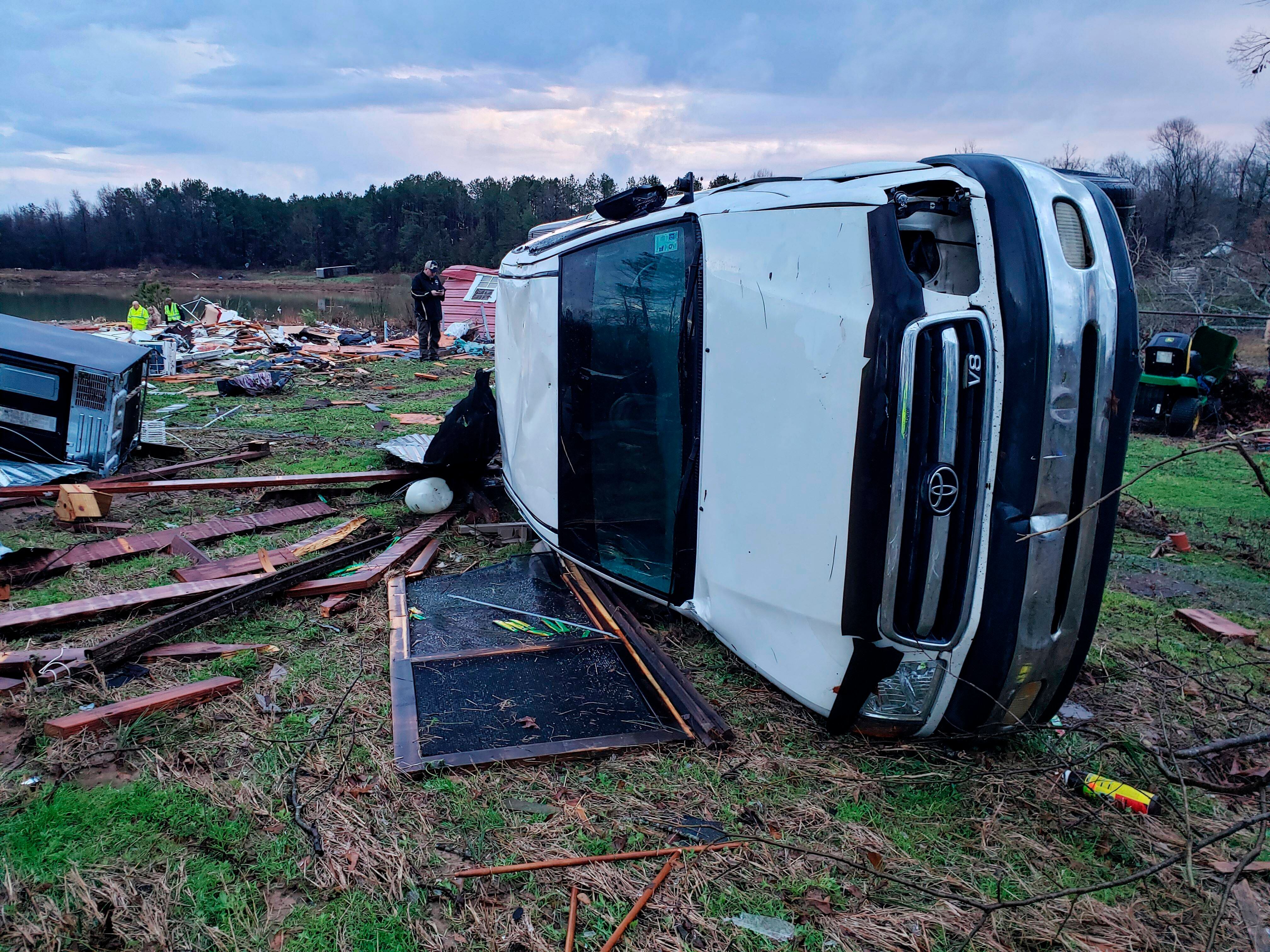 En Luisiana, bomberos encontraron los cuerpos de una pareja de personas mayores cerca de su casa rodante demolida, informó el Departamento de Policía de Bossier Parish en su página de Facebook. Los vientos eran tan fuertes que su casa se desplazó unos 60 metros (200 pies) de sus cimientos.