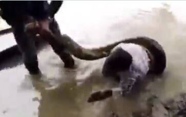 En la filmación se puede ver como el hombre lucha contra el reptil para lograr liberarse.
