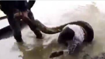 El reptil lo tenía envuelto dentro de las aguas del río. ¡De no creer! Hombre logró liberarse de boa constrictor de cinco metros que lo tenía atrapado.
