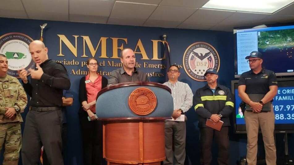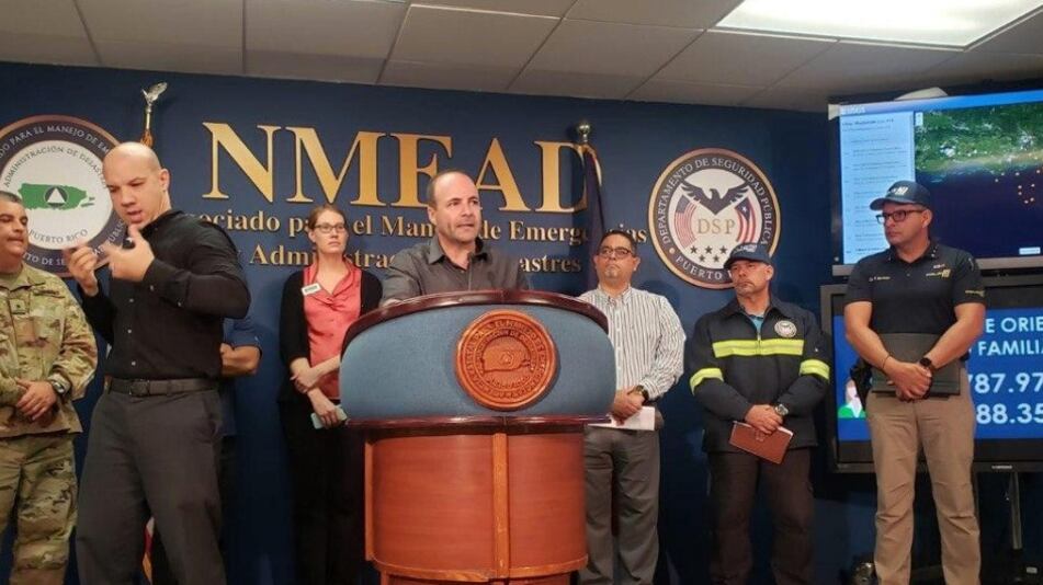 Román González estuvo acompañado del secretario de Seguridad Pública, Pedro Janer Román y el director de Operaciones del Negociado de Manejo de Emergencias y Administración de Desastres (NMEAD), Joel Figueroa Betancourt.