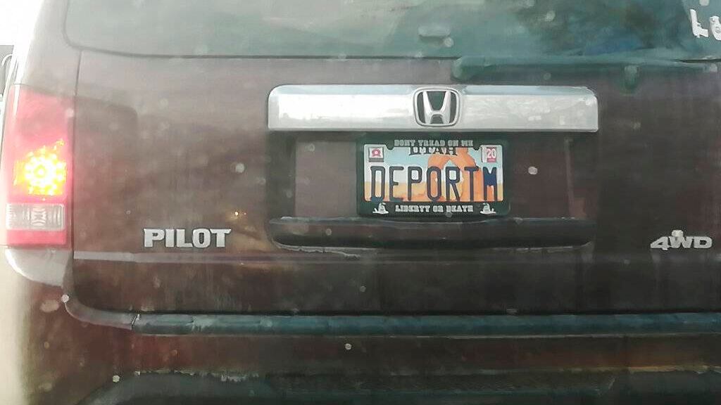 Los legisladores en Utah quieren determinar cómo una placa de matrícula de vehículo con la frase “DEPORTM” (depórtenlos) fue aprobada a pesar de reglas estatales que prohíben la expresión de desprecio por una raza, religión u opinión política en las placas.