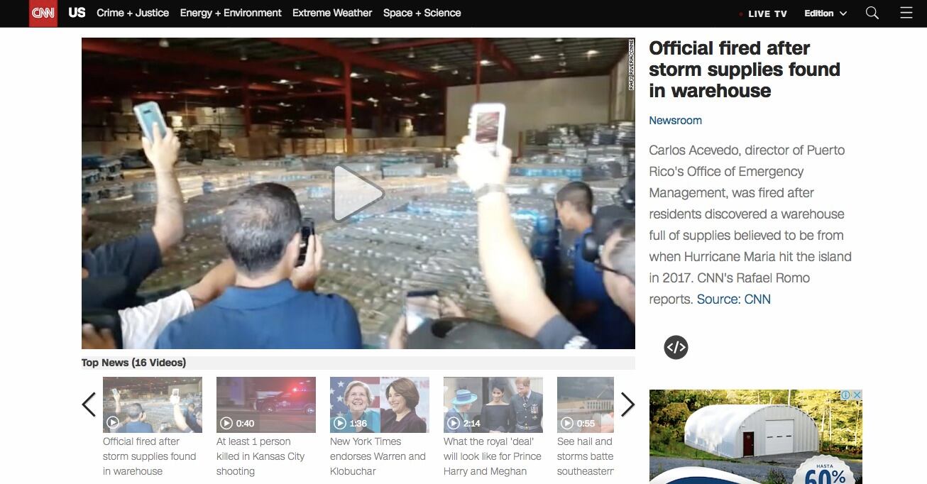 El hallazgo por parte de la ciudadanía de un almacén lleno de suministros que no se distribuyeron a damnificados en la zona de emergencia por movimientos sísmicos no solo ocupó los titulares de los medios informativos en la Isla, sino que ha sido noticia reportada en diversos medios fuera de Puerto Rico.