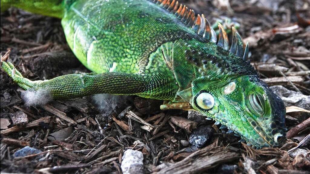 Las temperaturas bajas paralizan a los invasivos reptiles, pero las iguanas no necesariamente mueren. Eso significa que despertarán al subir las temperaturas el miércoles.
