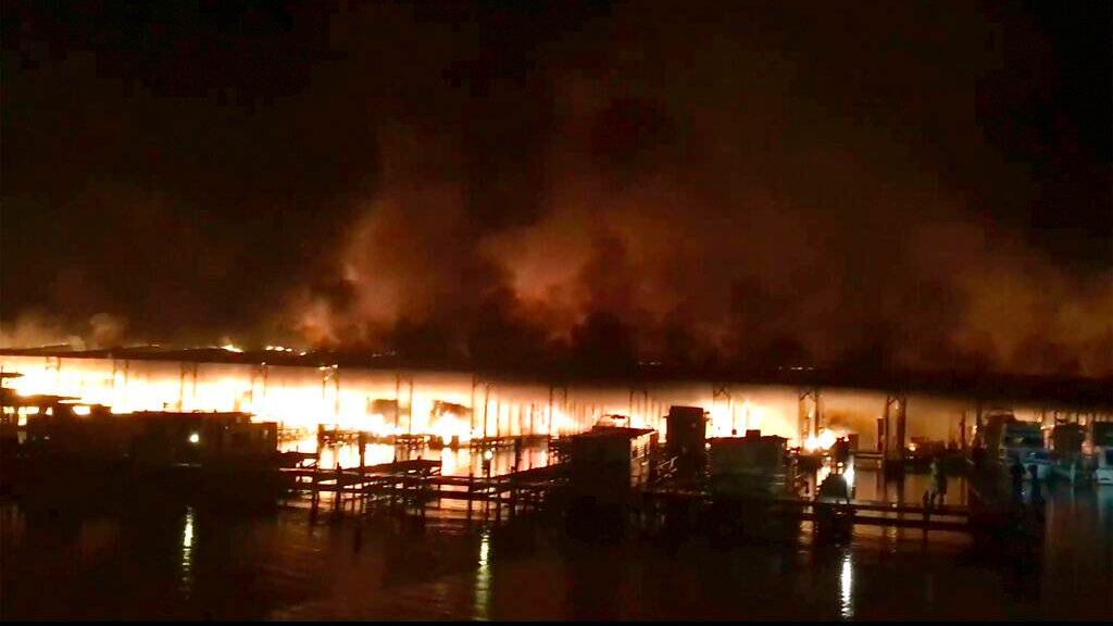 Las llamas surgieron poco después de la medianoche cuando la gente estaba durmiendo en sus barcos y devoraron el muelle y el techo de aluminio que cubría a varias de las embarcaciones, arrojando escombros al agua y trancando toda ruta de escape.