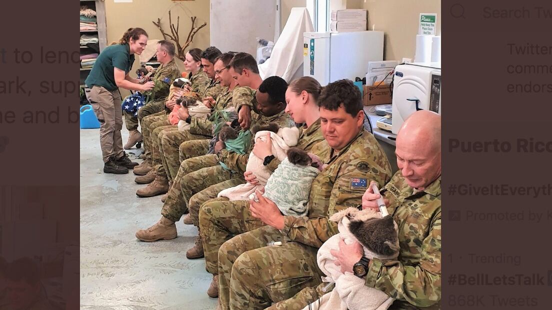 Un grupo de soldados australianos se hicieron cargo de alimentar a varios koalas durante su tiempo libre, según la página de Twitter Australian Army.