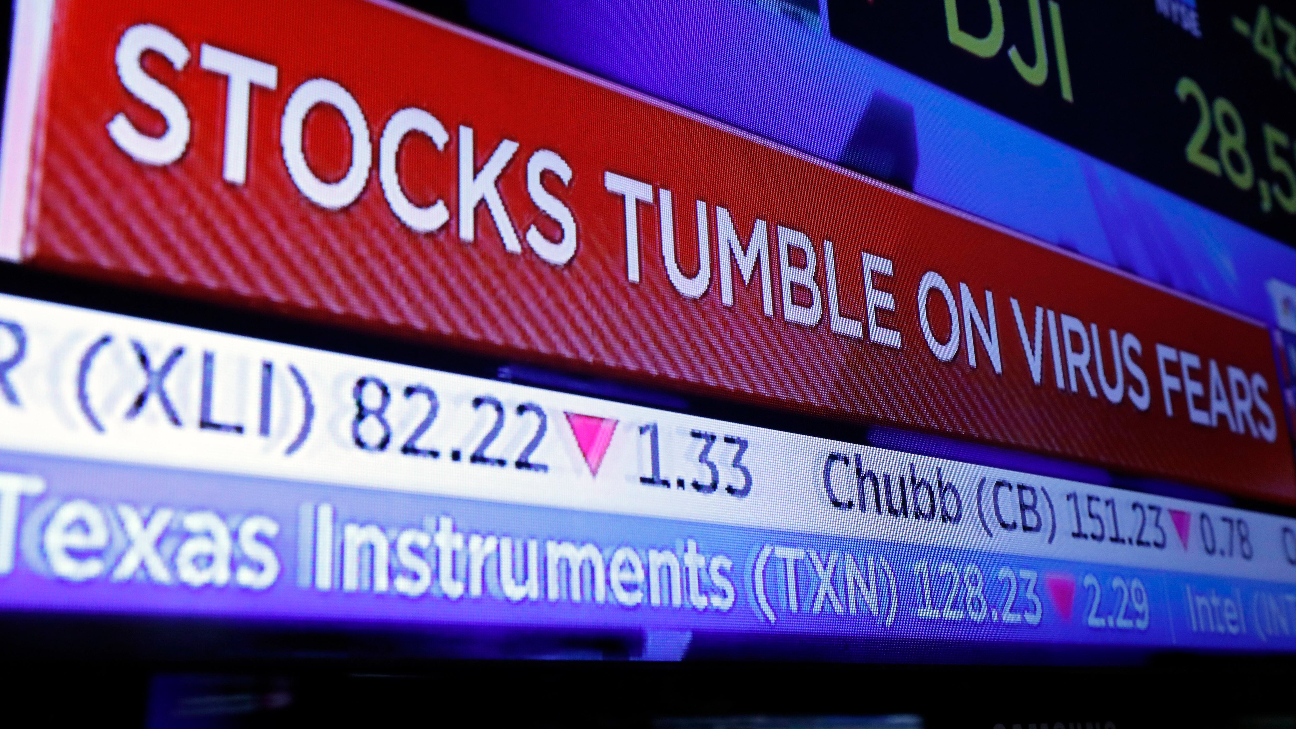 Las acciones en la Bolsa de Valores de Nueva York operaban a la baja el jueves al mediodía debido a las preocupaciones por el virus surgido en China y por los débiles reportes financieros de algunas empresas.