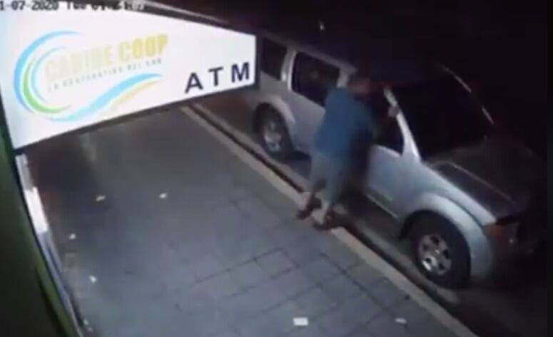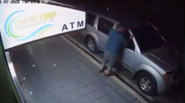 Las imágenes muestran a un hombre utilizando el cajero automático de una cooperativa en el mencionado pueblo cuando sucede el fuerte movimiento telúrico.