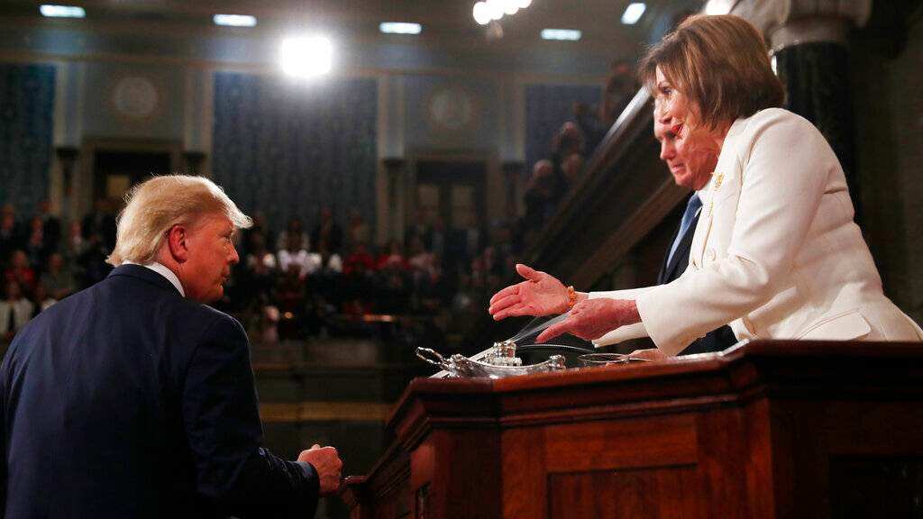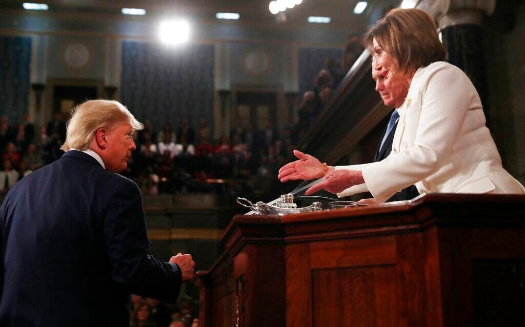 Pelosi, una piedra en el zapato de Trump que autorizó el juicio político en el que se acusó al mandatario de abusar de su autoridad al presionar a Ucrania a investigar a un rival político, creó hace un año una imagen viralizada con lo que parecía su aplauso sarcástico del presidente.