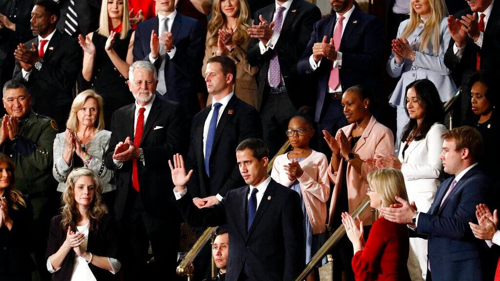 Guaidó _quien ha sido reconocido como presidente interino de Venezuela por Estados Unidos y más de medio centenar de países_ participó como un invitado sorpresa de último minuto en el acto del Capitolio donde recibió una enorme ovacionado de republicanos y demócratas tras ser mencionado por Trump quien en su discurso le ratificó el apoyo de su gobierno.