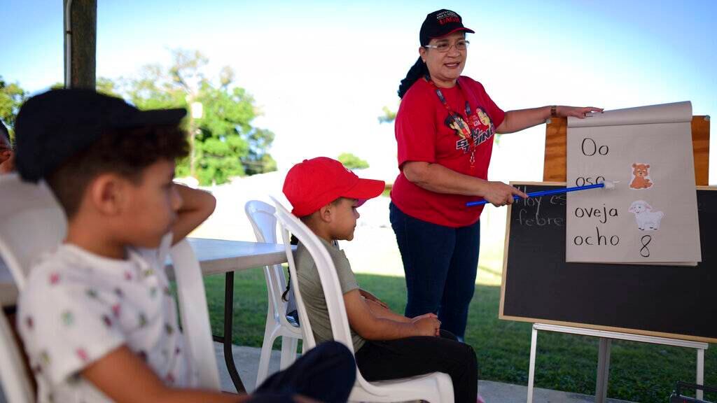 Las cortinas volaban sobre las cabezas de los chicos esta semana mientras pintaban, alejaban nubes de mosquitos entre risas y apuntaban hacia un helicóptero militar que sobrevolaba la zona. La maestra de kindergarten Esther Cordero observó la escena desde lejos y sacudió la cabeza mientras criticaba la respuesta del gobierno al temblor que mató a una persona, destruyó o dañó cientos de viviendas e hizo que el presidente de Estados Unidos Donald Trump declarase varios municipios zona de desastre.