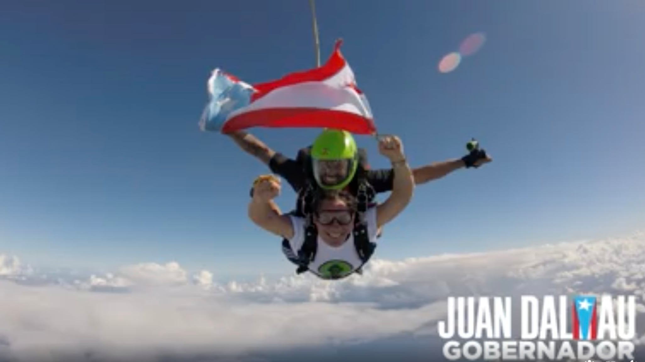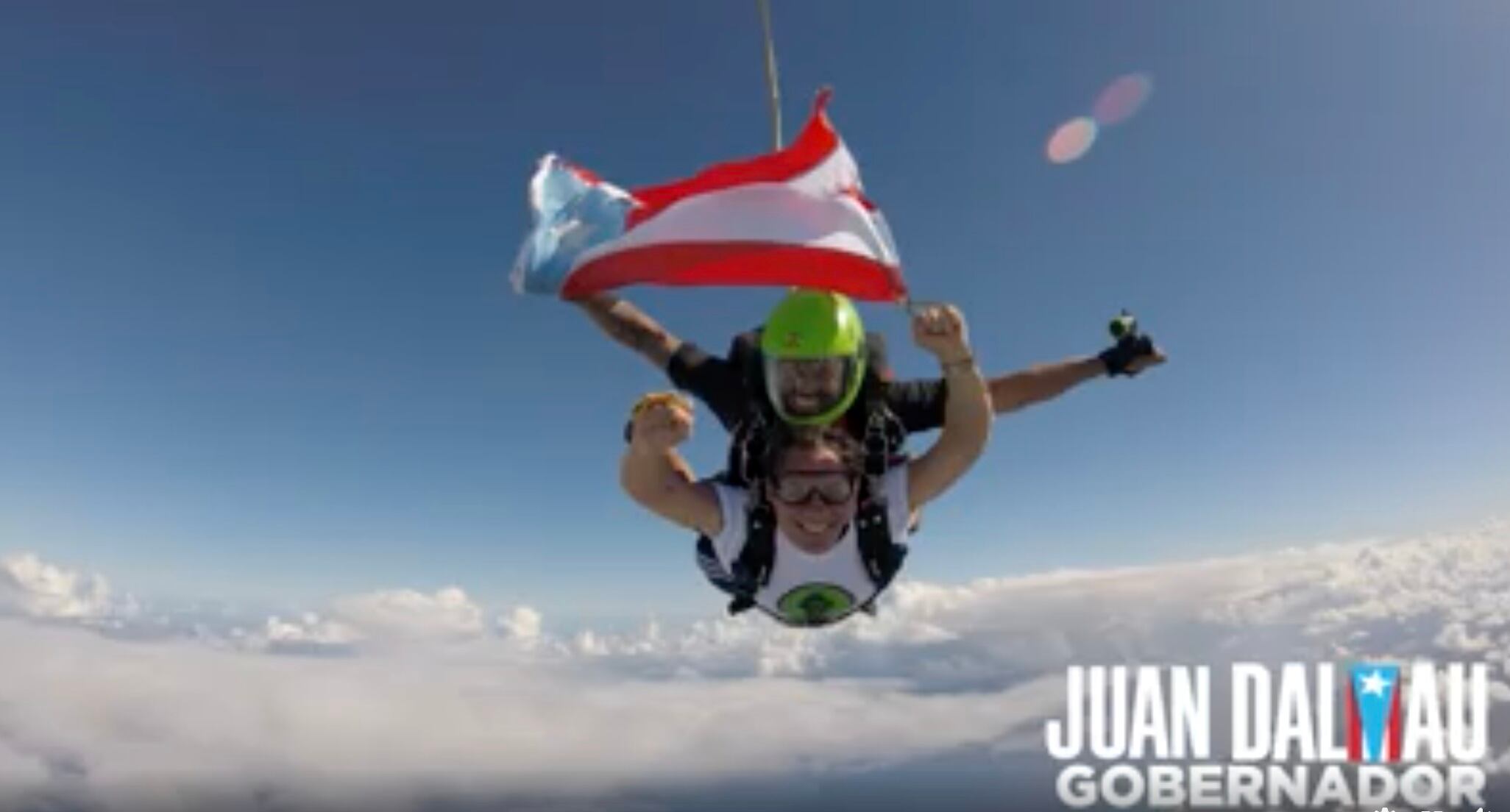 El candidato a la gobernación por el Partido Independentista Puertorriqueño (PIP) Juan Dalmau compartió un video en sus redes sociales del momento en que se lanza en paracaídas y saca la bandera boricua al aire.