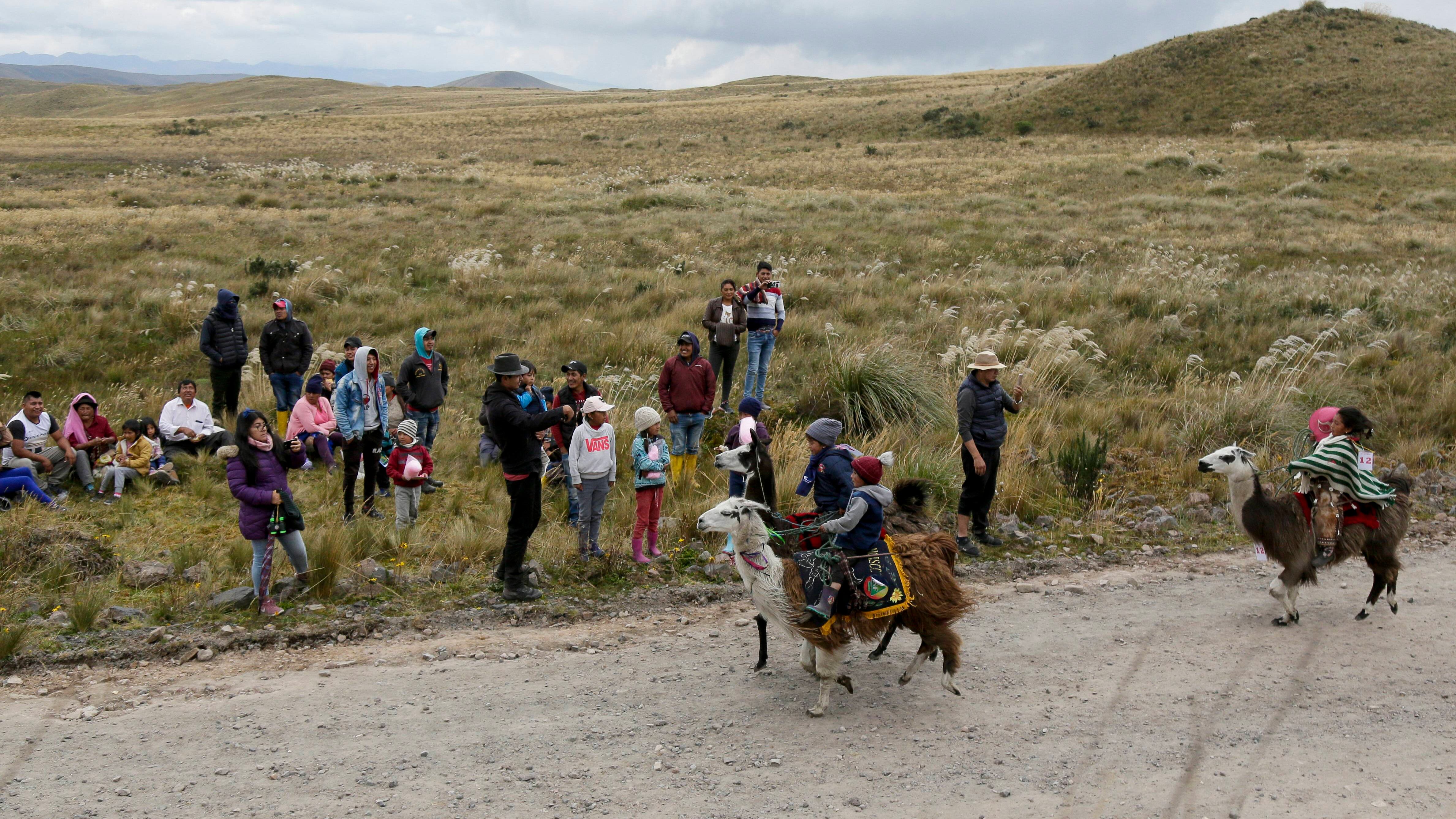 A más de 4.500 metros de altura se han congregado poco más de 2.000 personas, la mayoría indígenas del parque Nacional Llanganates, para presenciar el sábado una original competencia de niños montando llamas, camélidos americanos convertidos en ayuda para el trabajo en las alturas andinas y compañeros de vida.
