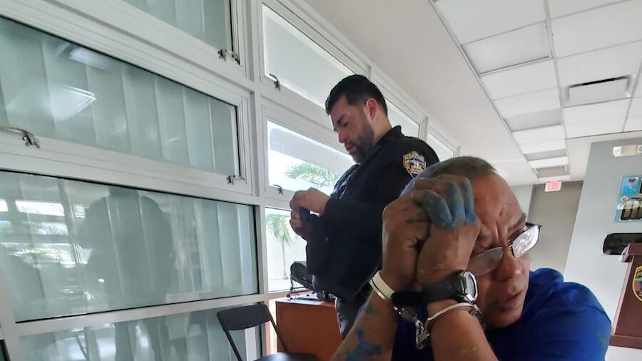 La querella de vandalismo y daño de bienes, fue reportada al Distrito de Corozal a las 9:04 de la mañana de hoy, luego que éste utilizando una pintura color azul ocasionó daños al mural valorado en $30,000.00.