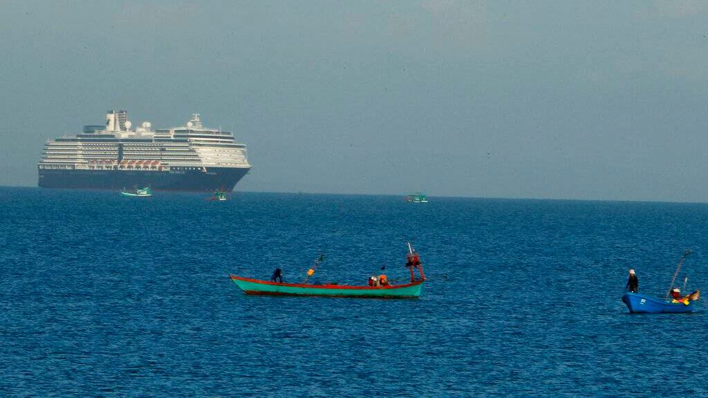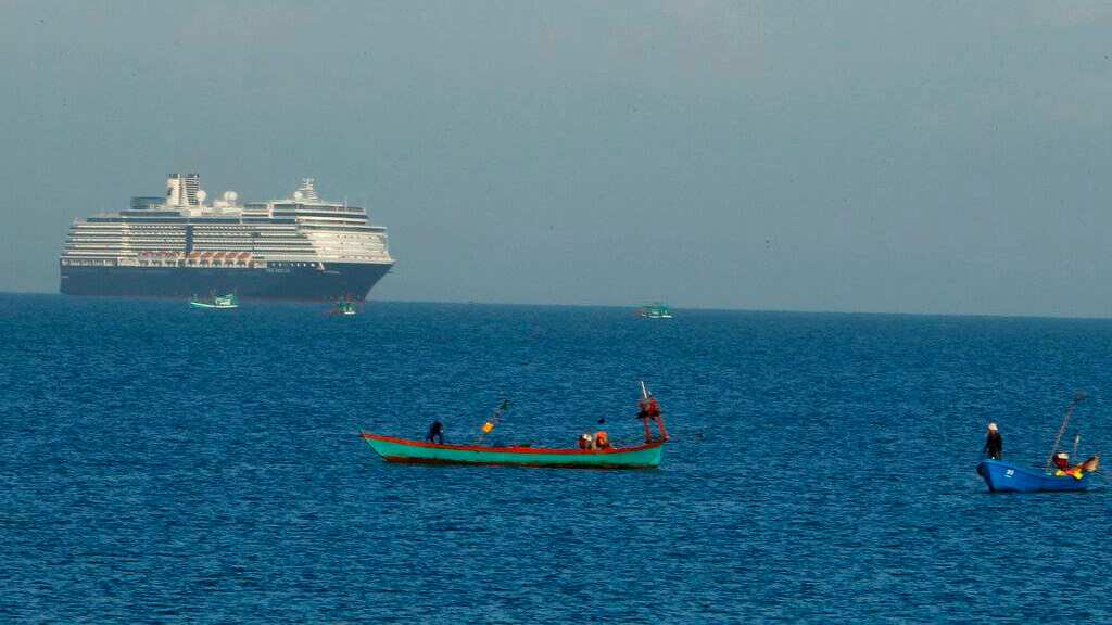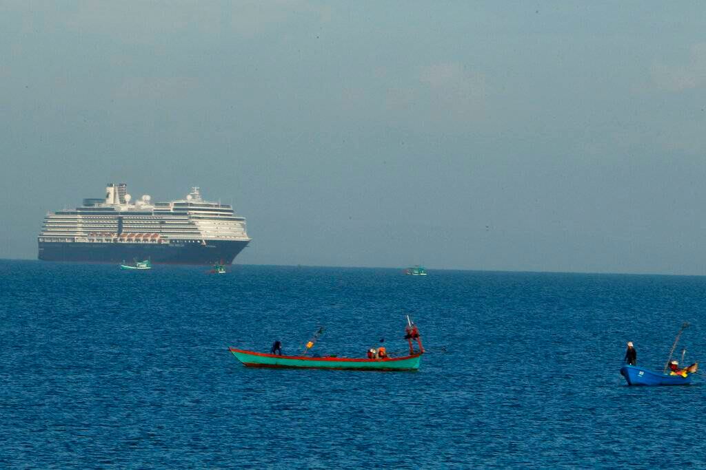 El crucero ancló a un kilómetro (.6 millas) de distancia del principal puerto, Sihanoukville, y un equipo de funcionarios de salud examinará a las personas a bordo y determinará el proceso de desembarque, dijo el gobernador de la provincia de Preah Sihanoukville, Kouch Chamrouen, a The Associated Press.