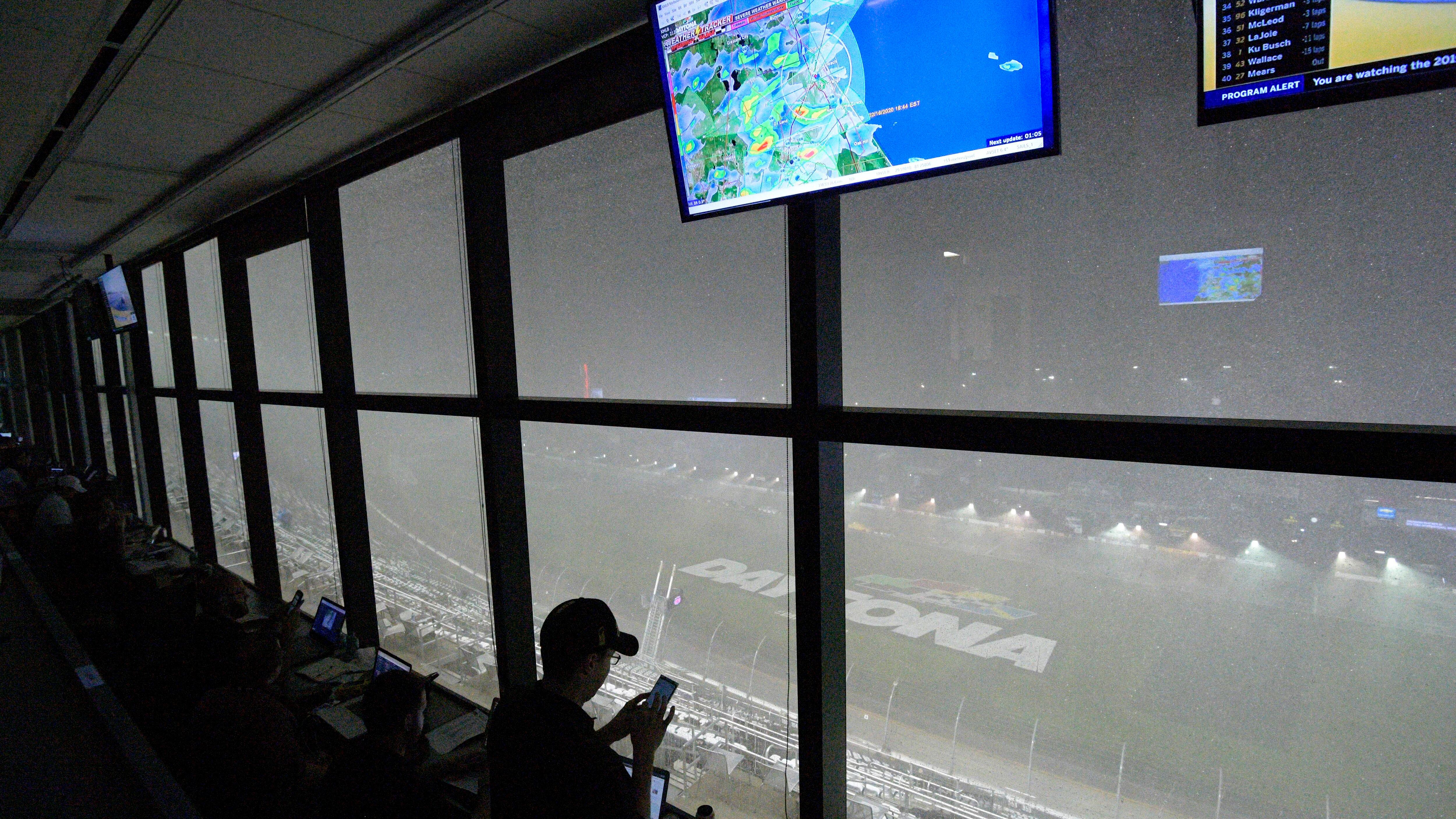 Las 500 Millas de Daytona fueron pospuestas por la lluvia por primera vez desde el 2012, mermando el inicio de la temporada de la NASCAR que comenzó con una agitada visita del presidente Donald Trump.