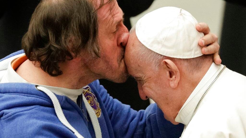 El miércoles, Francisco recibió otra inusual muestra de afecto: Un hombre se salió del área reservada para gente discapacitada y le plantó un afectuoso beso en la frente.