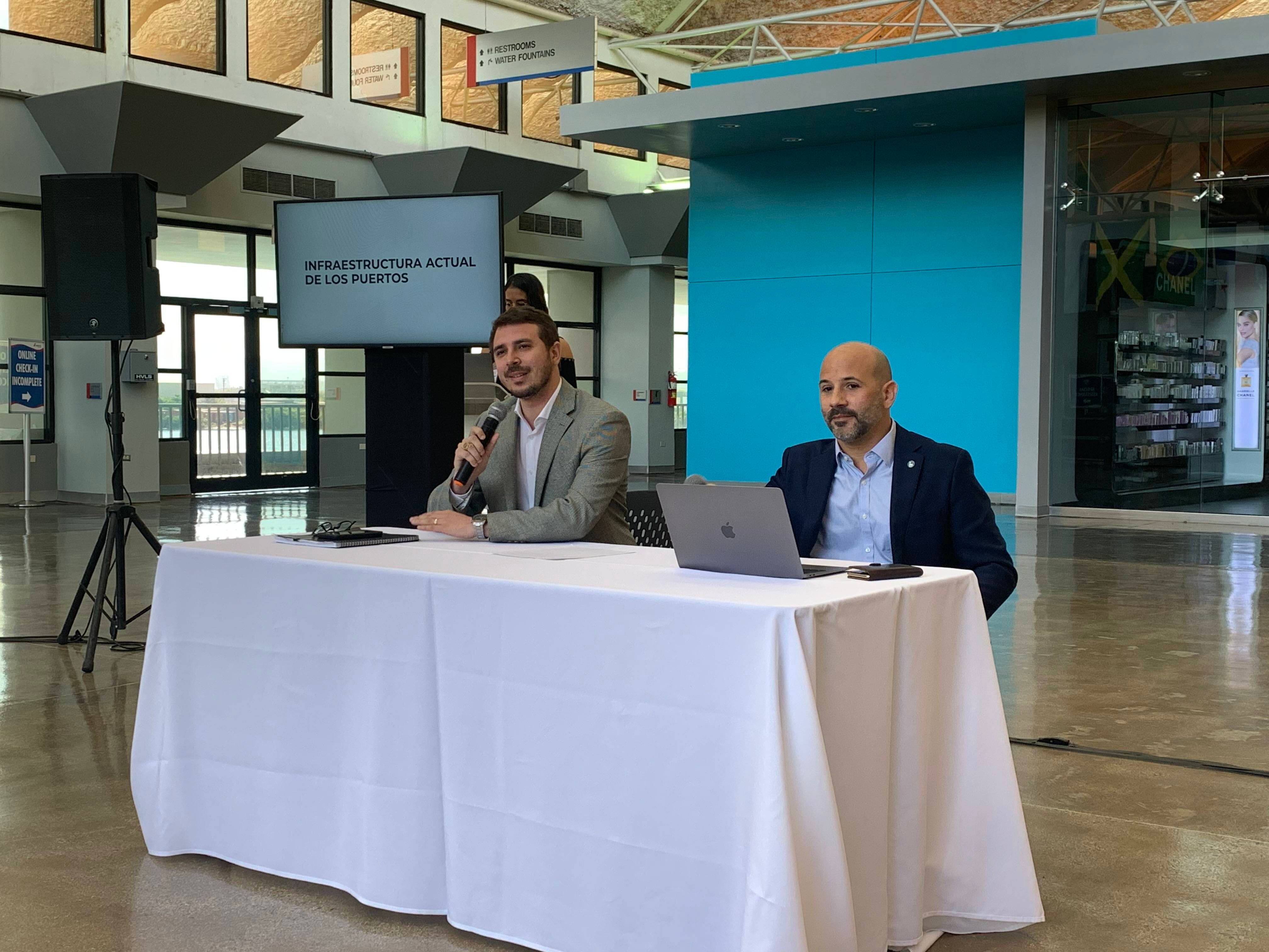 El director de la Autoridad de Puertos, Joel Pizá y el director ejecutivo de la Autoridad para las Alianzas Públicos Privadas (P3), Fermín Fontanéz, ofrecieron detalles sobre la APP para la reparación y operación de los muelles del 1-4, del 11 al 14 y los Panamericanos 1 y 2.