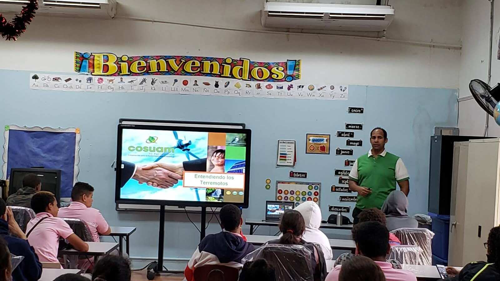 La charla forma parte de la campaña educativa que comenzó la organización a principios de febrero para concienciar escuelas, comunidades y al público general sobre los terremotos. La conferencia dictada por el Dr. Ángel Torres Valcárcel, Científico Ambiental, presidente de COSUAM de Puerto Rico y director del del Programa de Escuelas Sustentables (PES) fue coordinada por Melissa Vega, maestra de Autismo e Illianet Pérez, Directora en la EPCC.