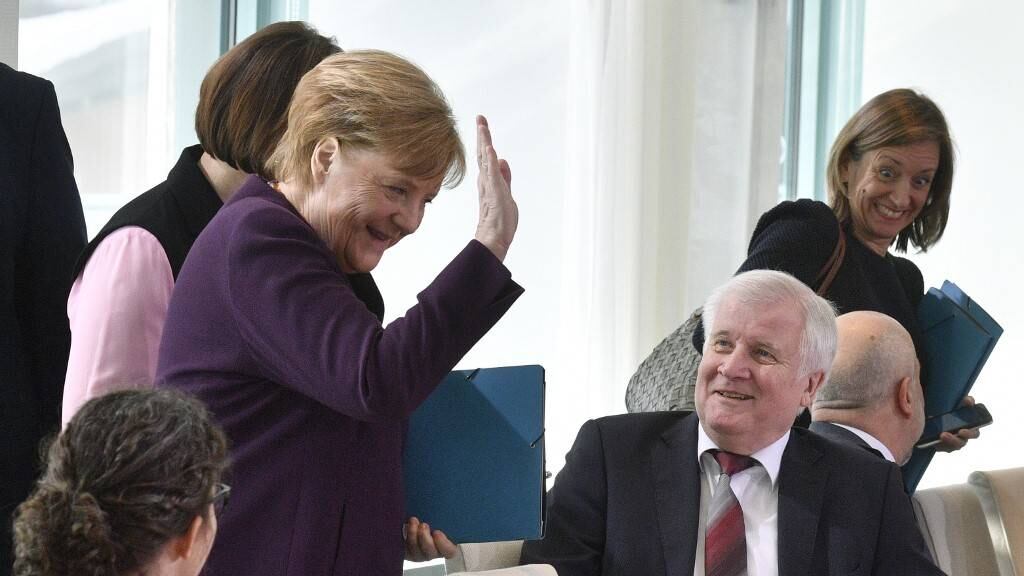Cuando Merkel arribó al salón, se acercó a Seehofer y le extendió la mano derecha para saludarlo, pero este declinó el gesto, sonriendo.
