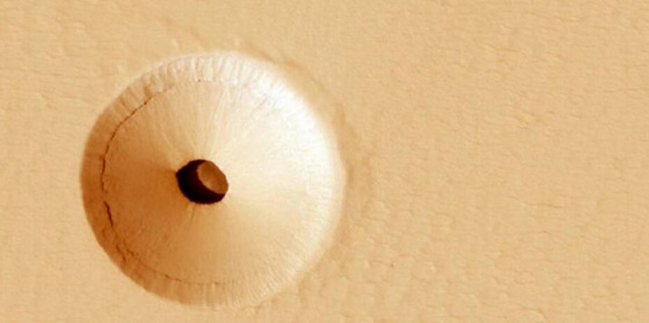 NASA comparte foto de agujero en Marte con caverna subterránea