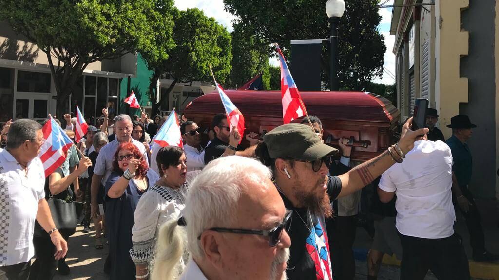 Los restos del líder independentista, Rafael Cancel Miranda, llegaron este domingo hasta la Catedral Nuestra Señora de la Providencia de Mayagüez en lo que sería su última parada antes de salir hacia el cementerio privado de Mayagüez donde será enterrado.
