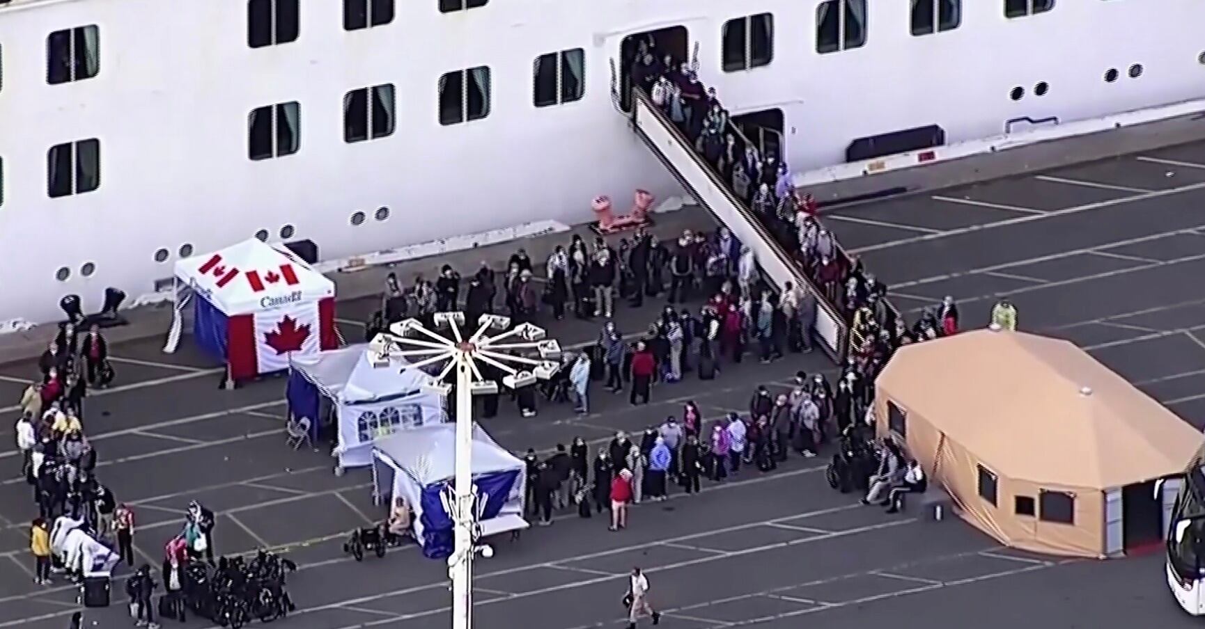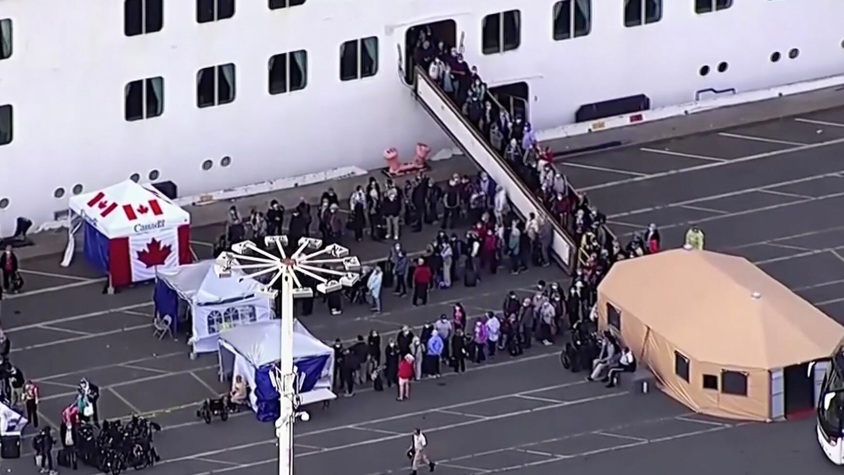 Muchos de los casi 240 canadienses a bordo dejaron la embarcación poco después de los enfermos críticos y permanecieron afuera de dos carpas instaladas en el muelle con banderas canadienses. Canadá y Reino Unido fueron algunos de los países que enviaron aviones alquilados para repatriar a sus ciudadanos.