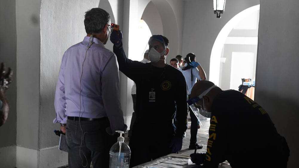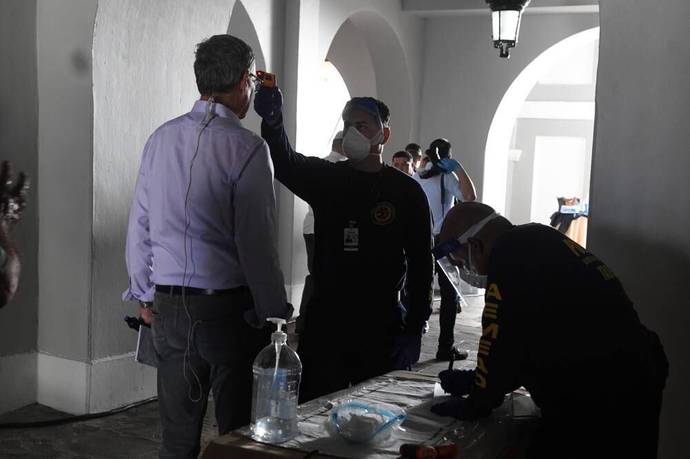 Personal del Negociado para el Manejo de Emergencias y Administración de Desastres realizó un breve cernimiento a todas las personas que participarían de la conferencia de prensa de la gobernadora Wanda Vázquez en la tarde de hoy, jueves.
