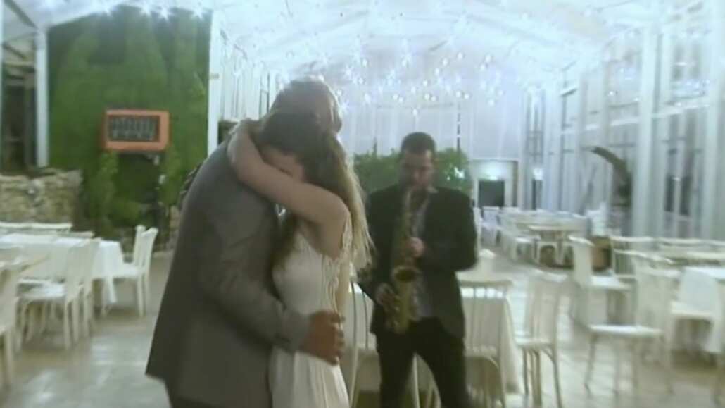 En el video, se ve a los nuevos esposos, felices, realizando su primer baile como esposos, mientras un músico les deleitaba con su saxofón.