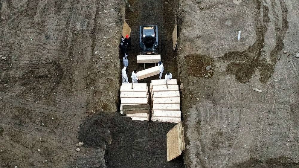 Nueva York es uno de los epicentros en el mundo de la pandemia, este viernes por la mañana se confirmaron 159 mil 937 personas infectadas, en donde han fallecido poco más de siete mil, en la Isla de Hart los cadáveres se envuelven en bolsas negras para cadáveres, después se colocan en una caja de madera en la que se escribe el nombre de la persona en caso de que alguien reclame el cuerpo.