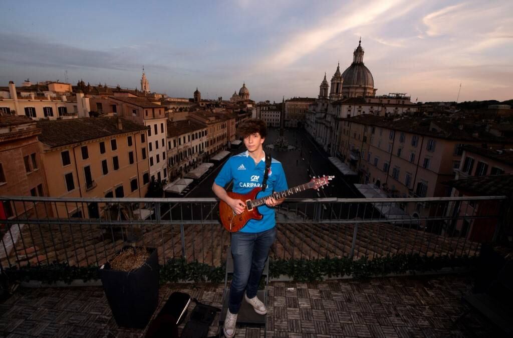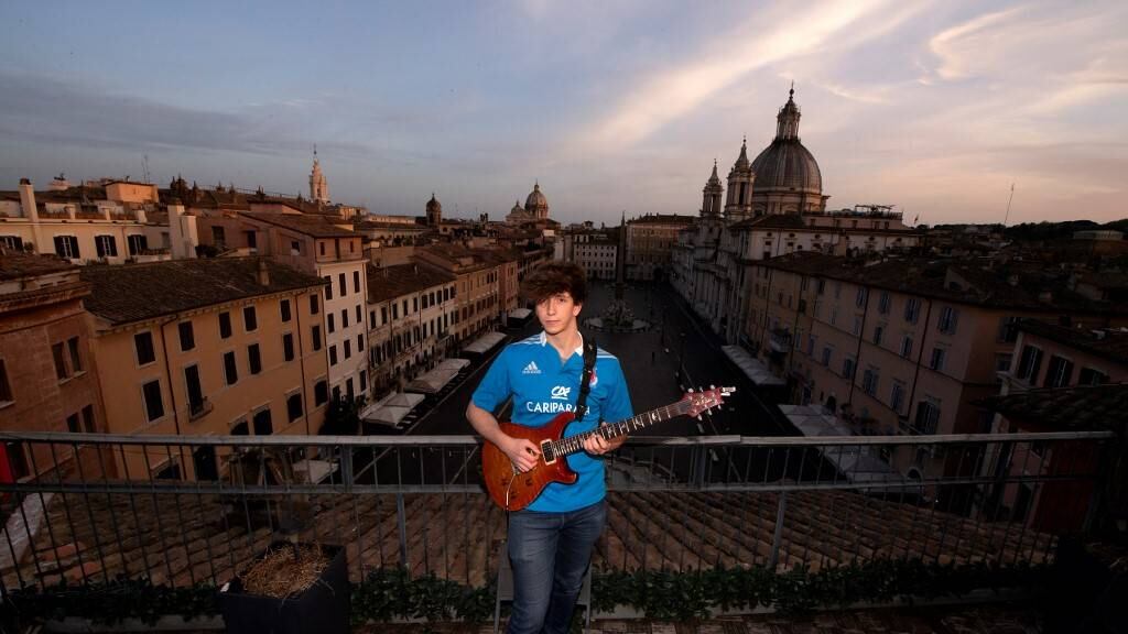Convertido en ritual gracias a las redes sociales, el concierto que propone el talentoso joven Jacopo Mastrangelo, estudiante de secundaria, desde los tejados de una de las plazas más bellas de Europa por sus elegantes fuentes barrocas, resulta una medicina para el alma.