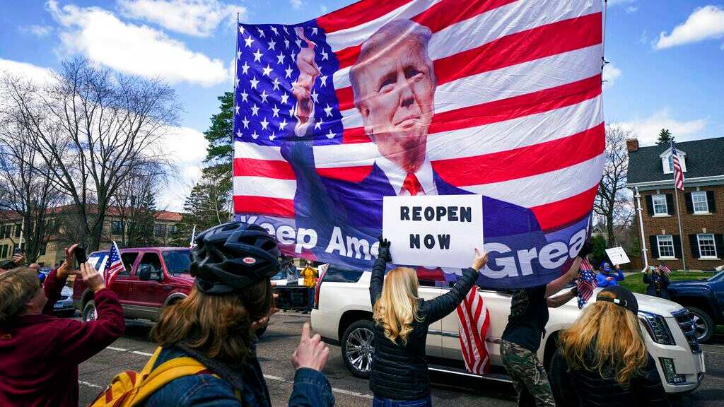 Muchos estadounidenses, especialmente en áreas rurales y otras partes del país donde no ha habido brotes graves, han exhortado a los gobernadores a que reabran las economías estatales. Ha habido manifestaciones en Ohio, Texas, Carolina del Norte, Kentucky, Virginia y Michigan, donde más de 3.000 personas acudieron el miércoles a lo que parecía un mitin del presidente, en el que ondeaban banderas con su rostro y había gorras con su lema de “Hagamos grande a Estados Unidos otra vez”.