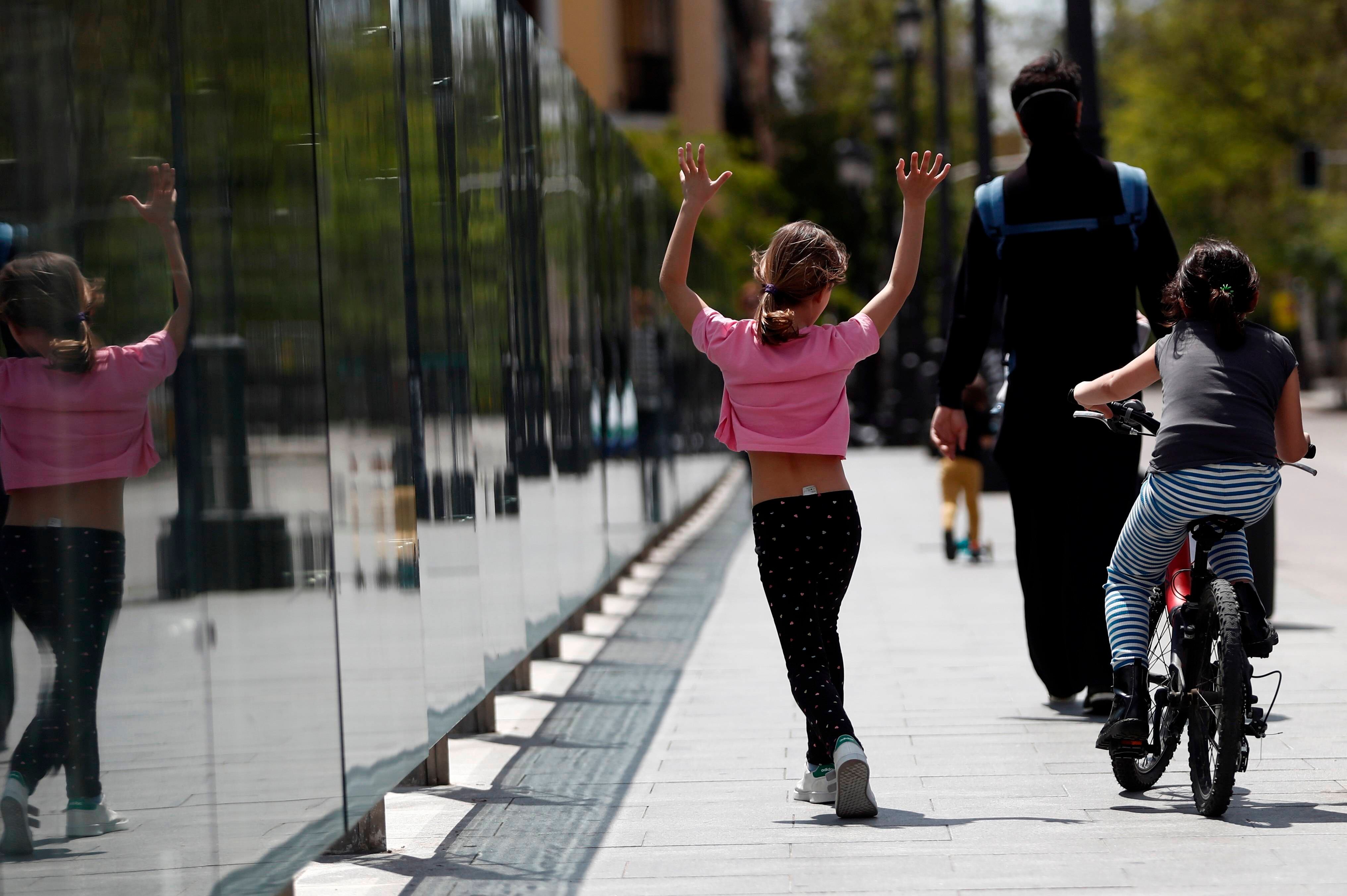 En medio del entusiasmo, patinetes, triciclos y carritos de bebé volvieron este domingo a las calles de los pueblos y ciudades españolas tras 43 días en los que la pandemia de coronavirus había enclaustrado a los niños en sus hogares para “desesperación” suya y de muchos de sus padres.
