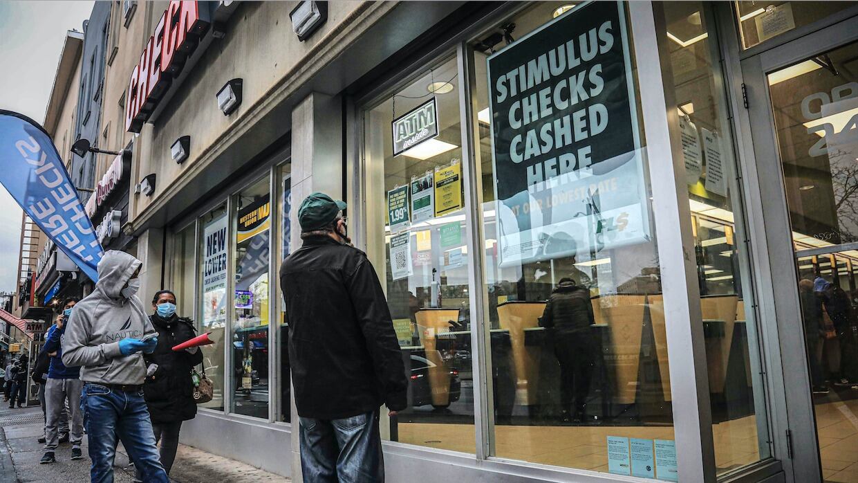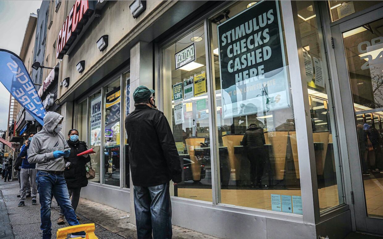 Si bien millones de trabajadores estadounidenses de antemano han recibido un pago de ayuda rápida de parte del Tesoro federal por medio de un depósito bancario directo, Smith se encuentra entre las millones de personas que carecen de una cuenta de banco tradicional y que deben esperar semanas para que les lleguen cheques de papel. Cuando los cheques finalmente llegan, esta población compuesta en su mayor parte por negros e hispanos no suele tener otra opción que usar los costosos servicios de cambio de cheques a fin de tener el dinero en sus manos.