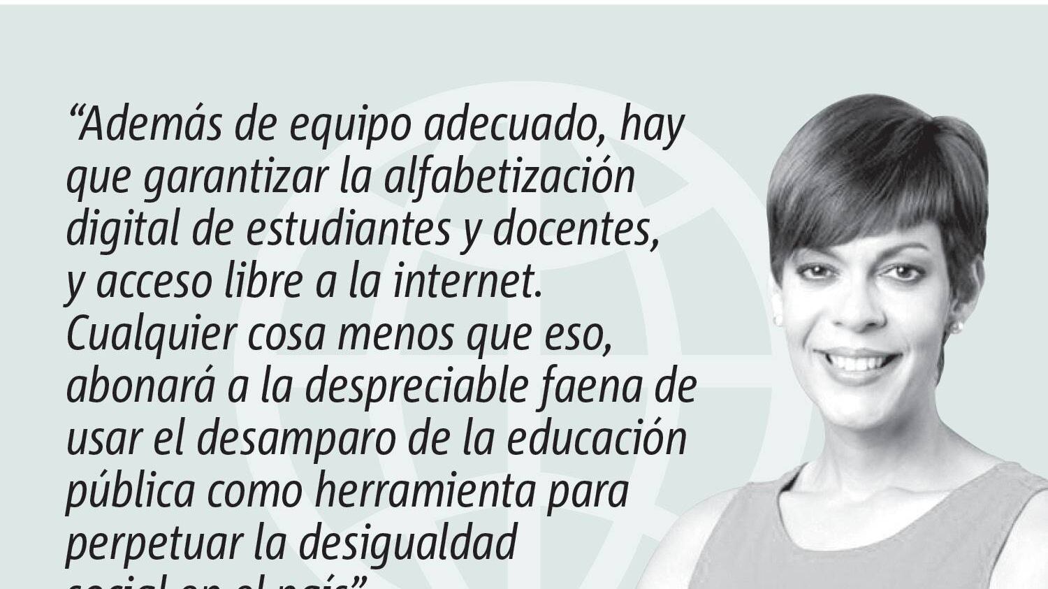 Además de equipo adecuado, hay que garantizar la alfabetización digital de estudiantes y docentes, y acceso libre a la internet. Cualquier cosa menos que eso, abonará a la despreciable faena de usar el desamparo de la educación pública como herramienta para perpetuar la desigualdad social en el país.