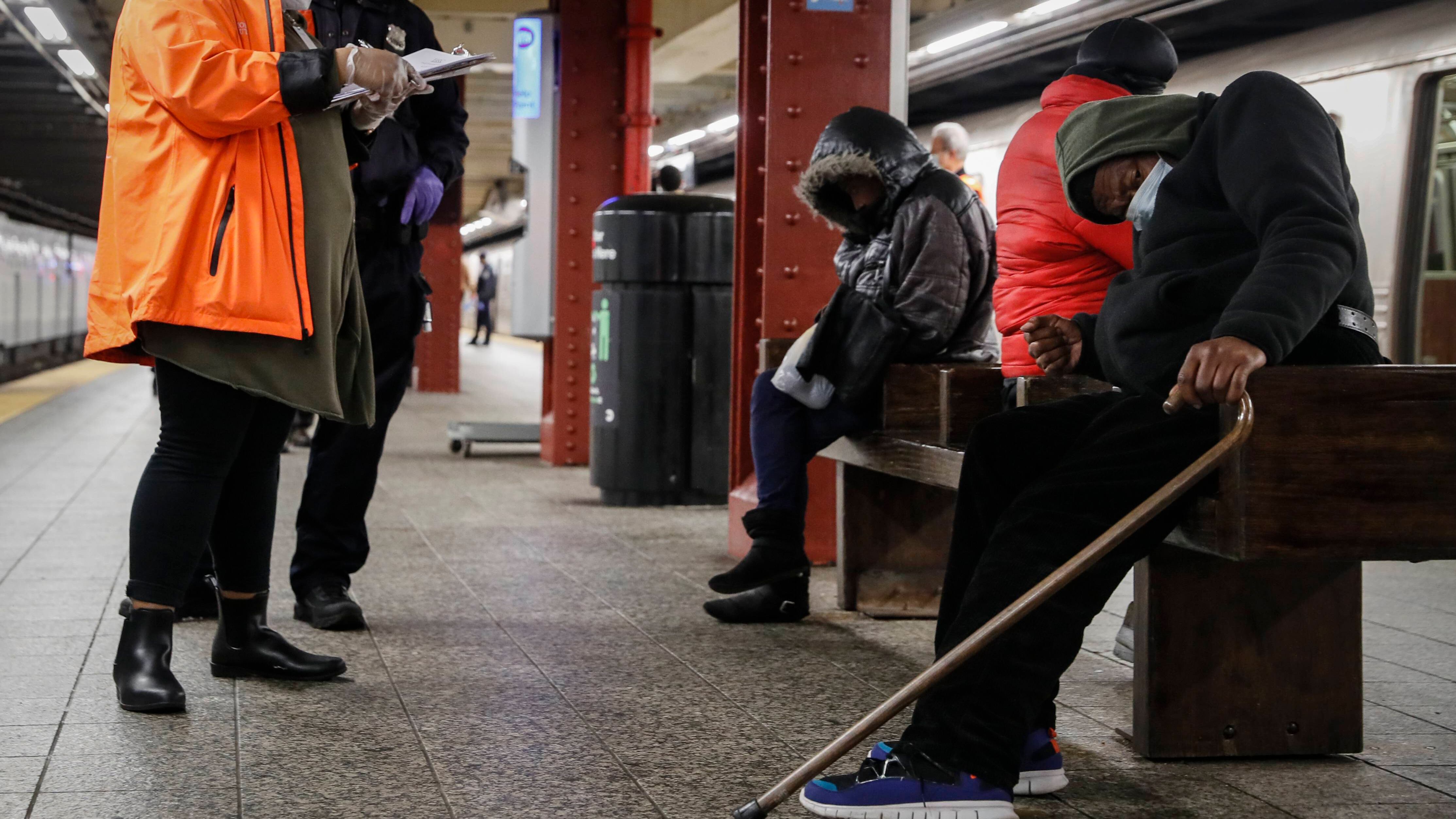 Desde el miércoles, las estaciones del “subway” cierran de la 1 a las 5 de la mañana para su desinfección diaria en medio de la pandemia de coronavirus. Trabajadores municipales las recorren para pedir a los indigentes que salgan y vayan a refugios.