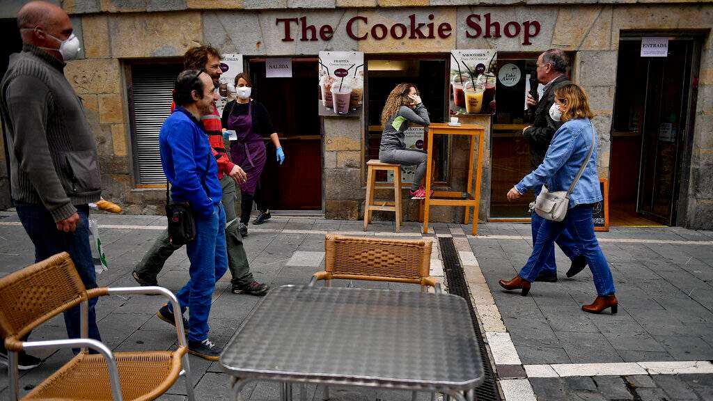 Aunque Madrid y Barcelona permanecen con una cuarentena más estricta, aproximadamente la mitad de los 47 millones de habitantes en España tienen permitido socializar con hasta 10 personas al mismo tiempo, comprar en pequeños establecimientos y disfrutar de una comida o un café en restaurantes y bares con mesas al aire libre.