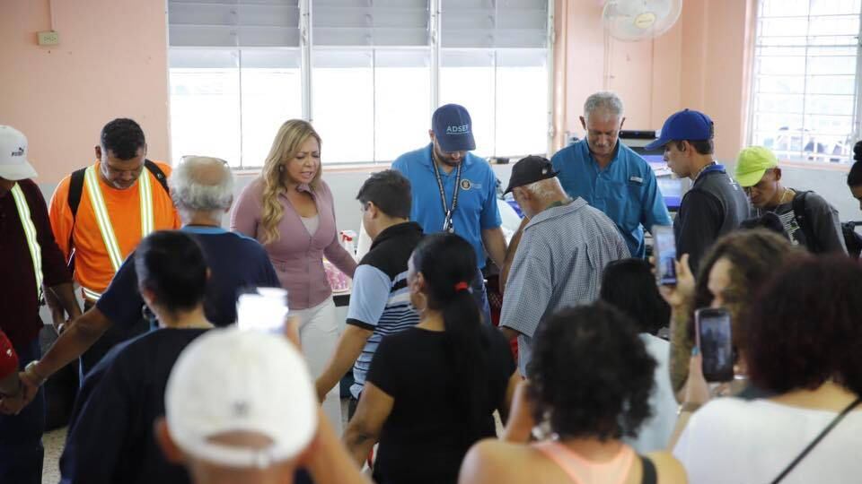 Luego llegó la senadora Evelyn Vázquez junto a empleados de la administración central de ADSEF y con un camión identificado del Gobierno de Puerto Rico, el cual contenía suministros de la agencia.