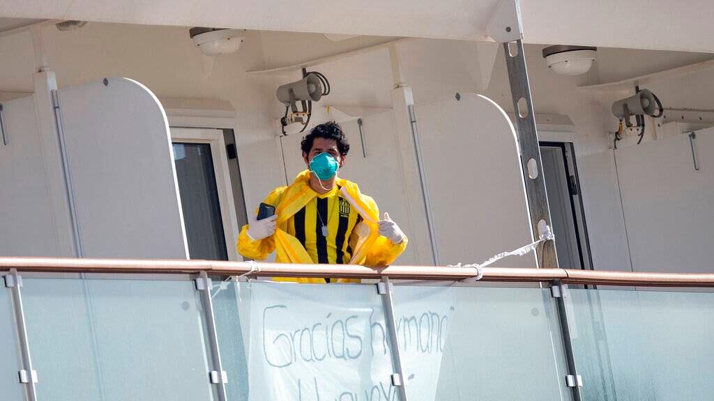 Tras desembarcar el martes, los tripulantes contagiados fueron enviados a un hotel y quienes dieron negativo a la prueba a otro. El personal de servicio no tendrá contacto físico con ellos y fueron capacitados para evitar contagio mediante protocolo.