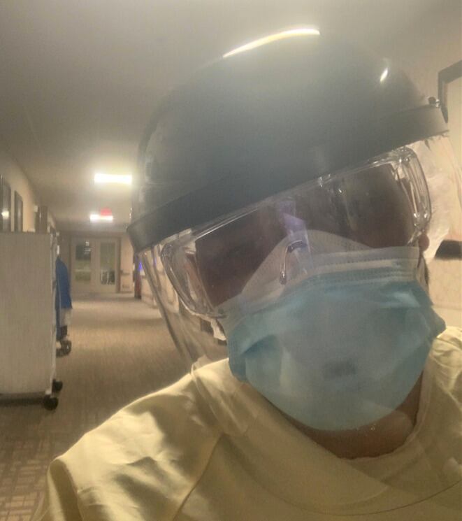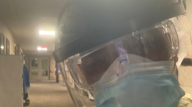 ¿Cree que se contagió en el trabajo? –preguntó Metro. Santiago explicó que cree que “fue uno de los momentos en que me removí la mascarilla para poder beber agua, luego de tantas horas trabajando sin tomar agua”. Detalló que tenían equipo de protección personal (EPP) completo, incluyendo doble mascarilla —una N95 y otra quirúrgica—, batas de plástico, y una cubierta completa en todo su cuerpo. “El contagio lo asocio a una de las veces que tuve que tomar agua de unas facilidades de tomar agua, donde toma cualquier persona”. Explicó que “las N95 crean demasiada deshidratación en la boca” y sus turnos eran de 12 a 16 horas diarias, dependiendo de la necesidad. “El 80 a 90 % del personal de ese lugar estaba contagiado, por eso la mayoría era un grupo de Puerto Rico y de toda la nación de Estados Unidos que fuimos a trabajar allá por eso”, apuntó.