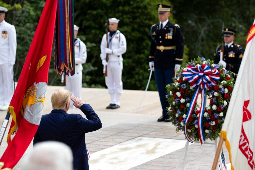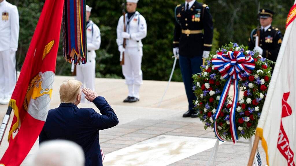 En dos actos por separado, el presidente Donald Trump rindió homenaje el lunes a los miembros del servicio militar en el Día de los Caídos en Guerras en momentos en que el país se ve afectado por el coronavirus.