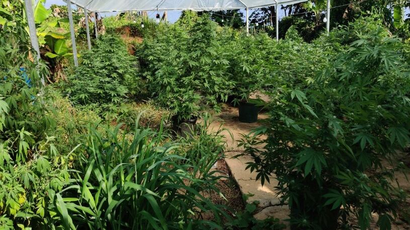 En el interior de la residencia abandonada se ocupó sobre más de 200 matas de marihuana de diferentes tamaños y equipo para cultivar las mismas.