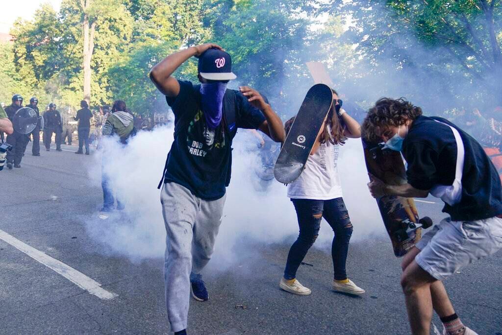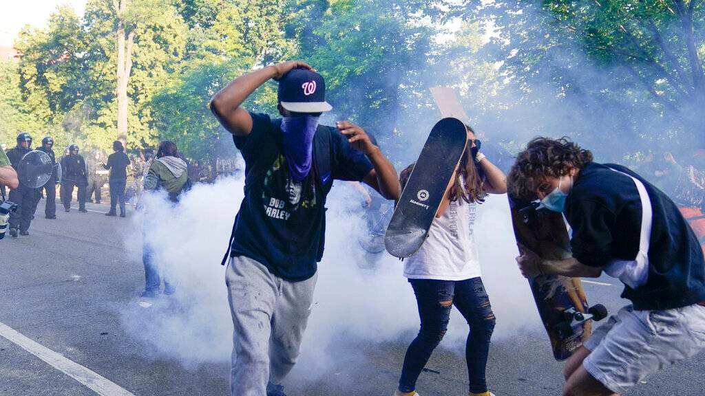 La policía lanzó gas lacrimógeno para dispersar una protesta cerca de la Casa Blanca, previo a que el presidente Donald Trump pronunciara un discurso a la nación.