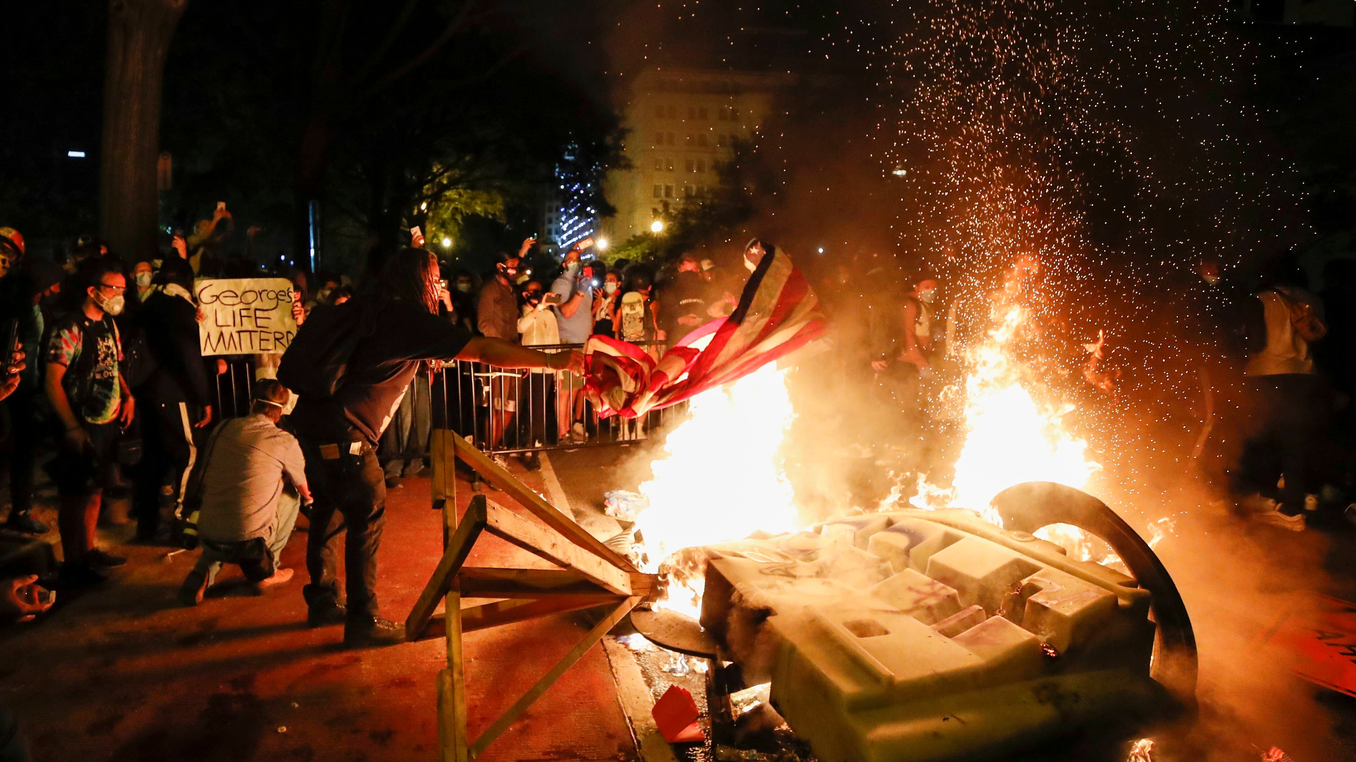 Las protestas ante la Casa Blanca se recrudecieron el domingo después de tres días de manifestaciones. La policía empleó gas lacrimógeno y granadas aturdidoras contra una multitud de más de mil personas, que coreaban lemas al otro lado de la calle, en el Parque Lafayette. La multitud salió corriendo y apiló señales de tráfico y vallas de plástico para prender una gran hoguera en una calle cercana. Algunos quitaron una bandera estadounidense de un edificio y la lanzaron a las llamas.