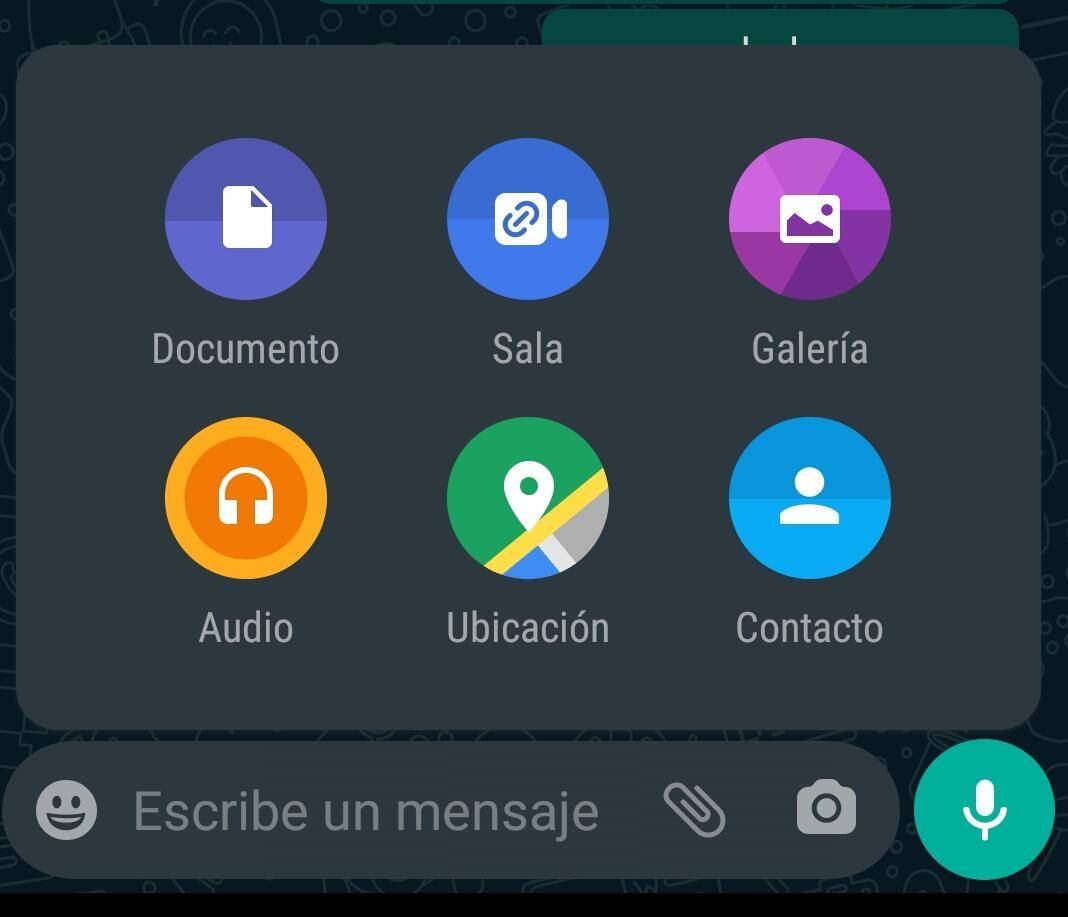 También podrás hacer videollamadas de este modo desde tu celular. Los pasos son similares pues en la opción del clip también te aparece la opción azul de “Sala” para ingresar a Messenger Rooms.