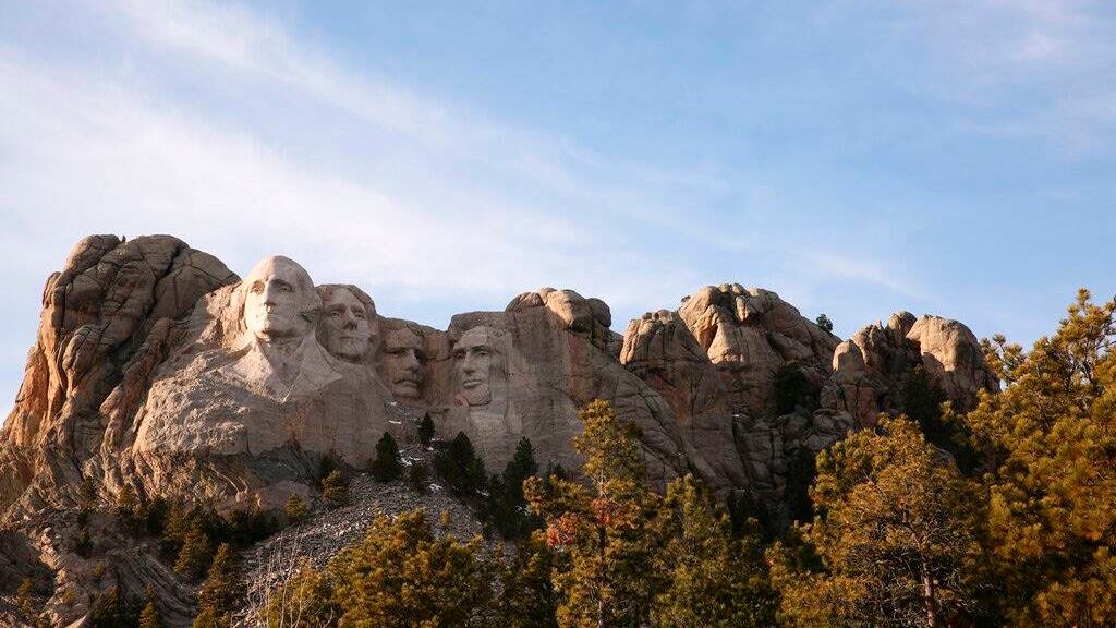 El monumento muestra los rostros de los presidentes George Washington, Thomas Jefferson, Theodore Roosevelt y Abraham Lincoln, tallados en granito en lo alto de una montaña en Keystone, Dakota del Sur.
